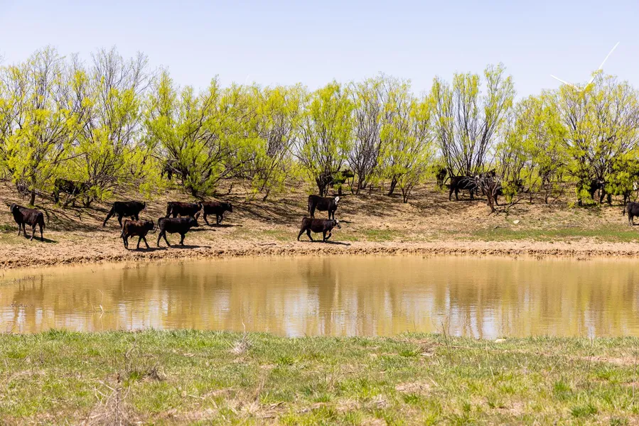 Water is plentiful on the ranch, thanks to 10 earthen tanks that ensure a consistent water supply. Additionally, Post Oak Creek flows through the eastern portion of the ranch for nearly 1 mile, adding to the property's natural appeal and providing water resources for wildlife and agricultural use.