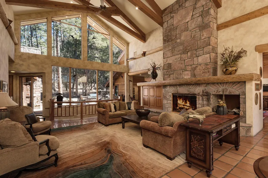 Skywater Ranch...Gracious, mountain resort-style living, without compromise. Nestled in a grove of majestic Ponderosa pines in the heart of the north Animas River Valley, this private 56-acre estate is next to the San Juan National Forest and offers private resort living in a prime location, including its own waterfall, private stream, extensive gardens and several ponds, yet only minutes from historic downtown Durango, award-winning golf and the Purgatory Ski Resort. Featuring a spectacular custom built log/cedar home designed for grand scale entertaining and family living, with over 13,000 SF of total constructed area, including approximately 8,997 SF of open living space, 3 bedrooms, 4.5 baths, gourmet chefs kitchen, great room, office, library, home theater, billiard and game room, exercise room, and a climate controlled wine cellar and a 2 car garage. For outdoor entertaining youll find extensive decks and in the back of the house, a large flagstone terrace with a built-in Dynamic cooking system, wood burning fireplace in a stacked moss rock wall, a large covered hot tub, and a rock fountain with cascading stream to soothe your senses. Skywater Ranch also features a 1,148 SF, 2-bedroom, 2-bath Valley Guesthouse, a custom-built 1,184 SF, 4-bay garage suitable for RV storage, multiple cars, lawn and garden equipment, as well as an 1,114 SF custom livestock barn with a separate feed/tack space plus several outbuildings. This is gracious mountain living at its best! Be sure to check out the TWO LINKED VIDEOS, 3D Matterport which enables you to walk the floor plan, the other is a lifestyle video with drone photography included.