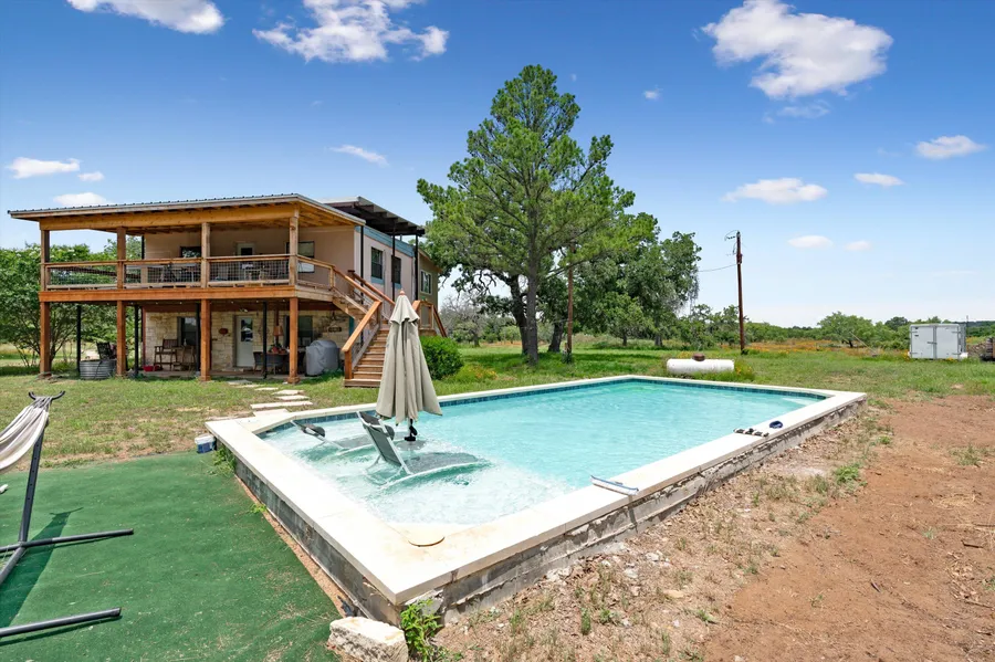 What a unique opportunity on this 5 acre tract of land in northwestern Llano County. The property is deep fertile soils with huge oak and mesquite trees throughout. There is an excellent water well, electricity, septic, and metal barn with a workshop attached. The house is a two story concrete block 3 bd / 2 ba home with huge cedar porches and balcony to sit outside and enjoy the countryside. There have been numerous remodel improvements to the house, but some of those projects are still being completed. The house is being sold as is, with the new owner having the ability to complete the remodel and make the finishing touches exactly how they like. However, what sets this property apart from most is the in-ground swimming pool that alone cost close to $100,000 to install. The new owners can truly enjoy the country life while relaxing in their custom swimming pool. This property truly has endless potential with all kinds of country living charm.