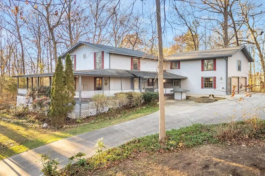 Welcome to this spacious 3,888 square foot home nestled in one of the area's most desirable lake communities. Perfectly positioned just across the street from the water and the community lake access lot, this property offers the charm of lakeside living without the premium shoreline price. Enjoy serene lake views, morning walks and effortless access to community lakeside amenities and a relaxed outdoor lifestyle. If you enjoy boating, there is a fully accessible public boat ramp just down the street. Inside, you'll find an expansive layout with room for both relaxation and entertainment. The home is fully livable and comfortable just as it is, but has plenty of opportunity for updates to make it your own. The heart of the home is the expansive kitchen, featuring a gas burning fireplace and a massive center island. This is ideal for cooking, gathering and entertaining. Just off the kitchen, you'll find a large sunroom filled with natural light and anchored by a cozy gas burning fireplace, a perfect spot to relax year-round. The main house offers 3 bedrooms and a full bathroom upstairs with a bonus room that could be used for an office. There is a large living room with hardwood flooring and a beautiful stone gas burning fireplace. There is a full bathroom on the main floor. Adding even more value is the separate living area above the garage, complete with its own private entrance through the garage. This versatile suite includes a full bathroom, a kitchenette area, and two large rooms, making it ideal for guests, extended family, a home office, or rental potential. There is a large 2 car garage complete with workbench for working on those household projects or hobbies. The water source for this home is a well that is purified by Aqua Clear Filtration. Whether you're seeking a peaceful retreat, a place to enjoy lake living, or a home with ample room to grow, this property delivers space, charm, and opportunity in an unbeatable Both the garage and the room above the garage have window heating and cooling units for year round comfort.