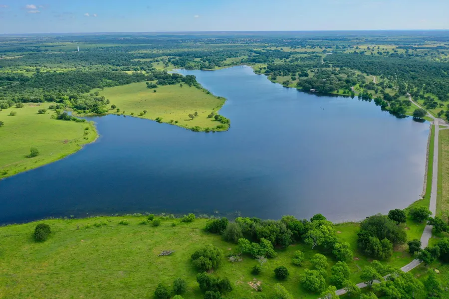 Additional Lake information: One of the largest privately owned lakes in Texas, it currently covers a surface area of 88 acres with the deepest area being 47 feet and an average depth of approximately 12 feet. The lake was built with approval and appropriate permitting from the Corp of Engineers and State Agencies. All necessary permits were granted prior to the construction of the lake, and it approx.. 5 times the amount of impounded water that would be currently allowable (based on the general current state regulation of 200 AC/Ft maximum)/ Million cubic yards of idrt were moved and 500 cubic yards of concrete poured in construction, which would result in an extremely costly undertaking today. The lake is fed by Long Branch Creek and the lakes approximate drainage area is well over 1,000 Acres.