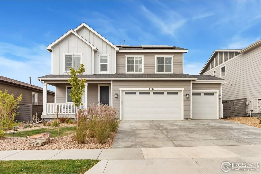 Savy buyers shop smart! Get a 5.6% rate for 5 years! Kinston is one of the top spots in Northern Colorado! Plus save money on utilities with solar panels included! Just steps from your front door, you can enjoy coffee or cocktails at The Hub Cafe, relax in a neighborhood garden, or cool off at the splash pad. If you're up for a short five-minute drive, you'll find endless entertainment, shopping, and dining options at Centerra and Johnstown Plaza. This house, known as The Hemingway, served as Richmond's model show home and it's loaded with upgrades! The main level features high ceilings and spacious walkways that enhance the open floor plan. Off the entry, is a bright office with French doors. Upgraded LVP flooring leads to a generous living room. This kitchen boasts quartz countertops, upgraded appliances, gas cooktop, a walk-in pantry, display cabinets, and a gigantic island. So much counter space! A natural flow takes you to the bright dining room with a large sliding door that leads to a covered patio in the fully privacy-fenced low maintenance backyard. Upstairs, a roomy loft serves as an additional gathering space, complemented by a luxurious owner's suite with an elegant ensuite bath and a custom walk-in closet. You'll also find three more bedrooms, a shared bath, and the laundry room on this level. The finished basement includes a fifth bedroom, a fourth bathroom, and a third gathering area-bring your billiard table, ping pong, or card table. There is room for it all.