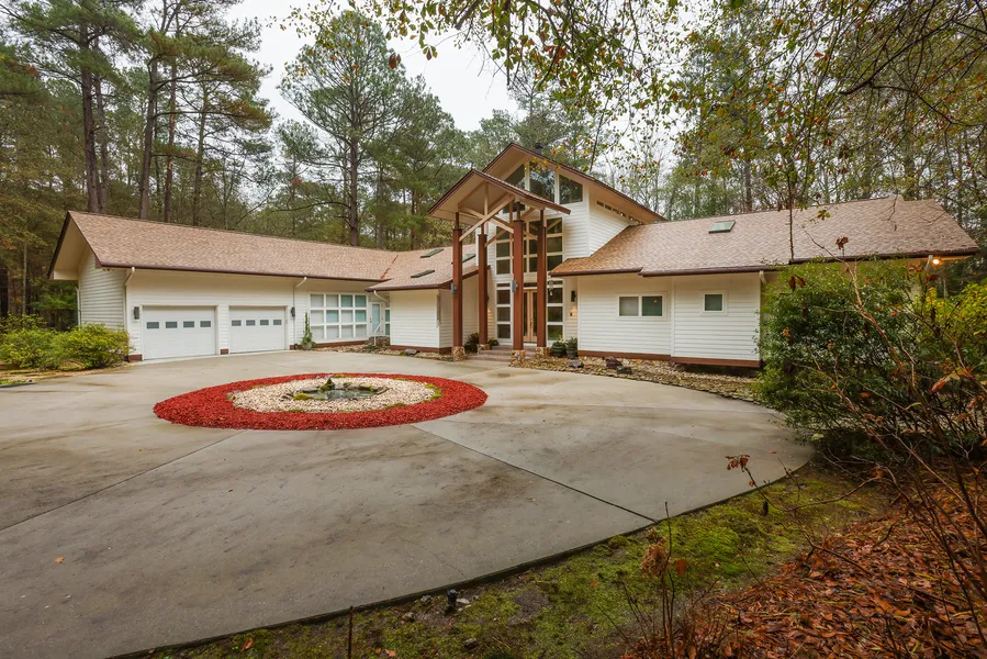 Designed by renowned architect Yuji Kishimoto, this exquisite contemporary residence is nestled on 62.6 acres of pristine land, offering both privacy and natural beauty with creek and private pond frontage. The design blends clean lines, expansive windows, and natural materials that create a seamless connection to the surroundings. Inside, you’ll discover soaring ceilings, a grand masonry fireplace, and hardwood floors that elevate the open, airy ambiance of the great room. The gourmet kitchen features solid-surface counters, double ovens, an island cooktop, and abundant cabinetry. The luxurious master suite includes a spa-like bath with a whirlpool tub, separate shower, and walk-in closet. The property also boasts a charming tea house, a perfect retreat to unwind and appreciate the serene landscape. With versatile spaces such as a private office, in-law suite, and multiple living areas, this home offers an ideal environment for both relaxation and entertainment. Outdoor spaces include a screened porch, covered deck, and beautifully landscaped gardens, complemented by an irrigation system and workshop. A multi-unit HVAC system, central vacuum, security systems, and an attached garage complete this exceptional offering—an architectural masterpiece that blends modern living with the tranquility of nature.