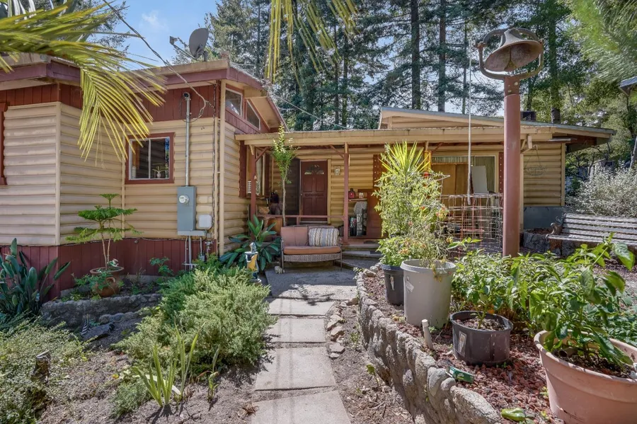 Dream BIG- Diamond in the rough!! Step into your future and turn you dreams into reality with this rare opportunity to own a home on a private sunny Approx 2 acres in Felton! Conveniently located just over a mile from Downtown and near the entrance to Henry Cowell State Park! This older home, which awaits your TLC, offers just over 2300 Sq Ft consisting of 3 bedrooms and 2 bathrooms with a great separation of space. Upstairs has a large open kitchen that leads to the dining/living room, a large bedroom which has access to the deck and an additional room/ office that's being used as a bedroom. Downstairs has 2 bedrooms each with their own entrances. There is a full bathroom on each floor. The large detached 4 car garage with workshop offers plenty of space for all of your current and future projects. The home is situated at the end of Manzanita Ave. with a long driveway that provides plenty of parking and privacy with an abundance of sun and space for gardening to your heart's content!