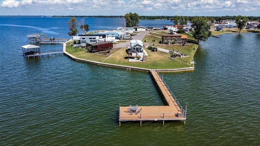 Awesome waterfront lot on RC lake with apx. 100 foot pier that you can fish from, with an island view! You'll enjoy Lake Life in this Tiny Home Community! Home is move-in ready complete with all the furnishings that are included. Stainless steel appliances, corner decorative FP with blower, movable kitchen island and so much more! Multiple windows to let the natural light in, very nice bathroom with step in shower and vanity. Stack washer and dryer connections in pantry. Sprinkler system uses either fresh water or lake water. Outdoor living is set up with a firepit, covered area, pizza oven and a very nice storage building for housing all the outdoor toys!