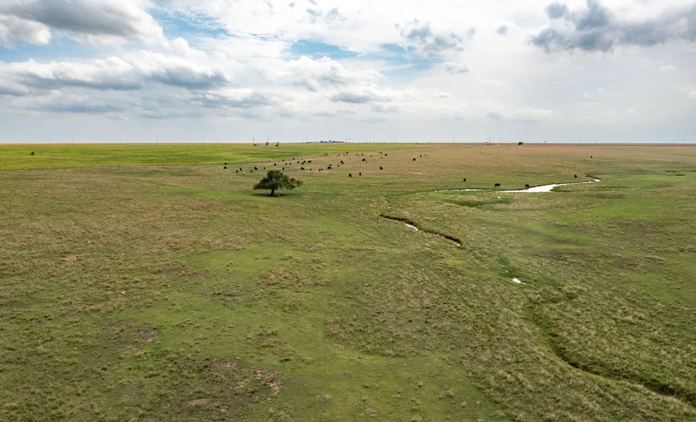 The Lipscomb County 647 Ranch is situated on paved View Point Road, 5 miles southeast of Booker, Texas. It is bounded by pavement on the east side, caliched CR 6 on the west, and caliched CR H on the south. It has 1 mile of paved frontage on View Point Road.