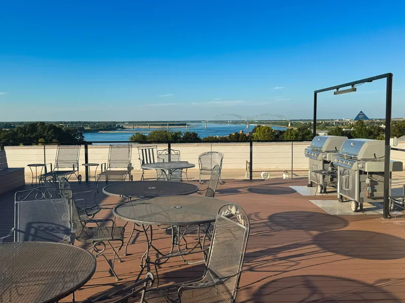 New Price! Riverside 648 is one of the coolest condos in downtown Memphis, located at the top of Riverside Drive across from River Tower and walkable down into Tom Lee Park. The rooftop views are amazing with two gas grills and plenty of seating, and you can see all downtown Memphis as well as both bridges along the river. There's also a kitchen with a full bath on the roof as well. This one bedroom one bath loft style unit is very open and airy with high ceilings and a wonderful eat-in kitchen with granite countertops and stainless steel appliances. Includes washer, dryer and refrigerator along with a built-in microwave, gas cooking, and much more. Awesome gated garage with a reserve parking space number 27, along with the fitness center and spacious common living area with seating and pool table.