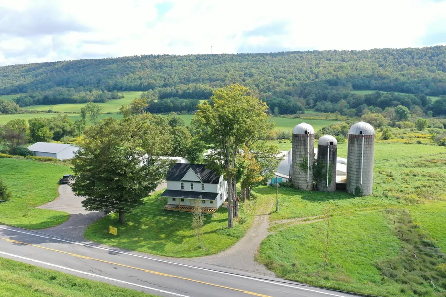 Rare opportunity to purchase prime farmland with 80+ acres of tillable land on the Otselic River along with a Gothic Revival style farmhouse, c. 1875, in the process of a full remodel (2023). This striking two-story house is ~2572 square feet and is currently being remodeled from top to bottom. The new roof, windows, new covered porch and sheathing are already in place, with new vinyl siding being installed shortly, and work will continue to complete the full remodel inside and outside. The Seller is willing to work with the new owner with their choice of finishes. The house will be heated with a propane boiler and radiant heat throughout; in addition to all new building systems, it will also feature an entirely new kitchen, new bathrooms, lighting, updated flooring, etc. Outside there is a detached two-story 3 bay garage, along with multiple agricultural buildings, including a traditional 2 story dairy barn, equipment/storage/livestock barns, including a metal pole barn, 50 ft X 68 ft, built in 2016. The main dairy barn includes 50 tie stalls, Patz barn cleaner and 8-cow milking parlor, and a bulk milk tank. There are over 80 acres of active agricultural land, 35 +/- acres which are river bottom, and the remainder of gently sloped meadows along the base of the hill on the property. Further, high tensile fencing exists around the barnyard pasture and all the ag fields. A large woodlot consisting of a mix of hardwoods, mainly maple and cherry, and some softwoods offer potential future timber harvest; however, if you’ve ever dreamed of running your own maple syrup production, the woodlot features a large grove of sugar maple trees and an existing, newer built, sugar house approx. 24 ft x 30 ft, which could be brought back into use. There is ~4242 feet of water frontage (0.8 of a mile) of Otselic River, renowned for its trout fishing, that runs through the property. This property has a history of great hunting based on its setup, topography and location in an area renowned for wildlife conservation. For the outdoors enthusiast, Muller Hill State Forest, with 3090 acres, offers additional miles of pristine forest with trails and many opportunities for hunting, hiking, camping and snowmobiling within just 3 miles from this property. Additional 704 acres are also available at the Texas Hill State Forest, only 4 miles away. Amenities are available in Georgetown within 1 mile for gas, groceries, post office and restaurant, with additional amenities and activities in Hamilton (14 miles), Sherburne (15 miles) and Syracuse, just a 45-minute commutable drive away, while Cortland is 33 miles. NYC/George Washington Bridge is 3.5 hours. **MORE PHOTOS COMING as REMODEL PROGRESSES