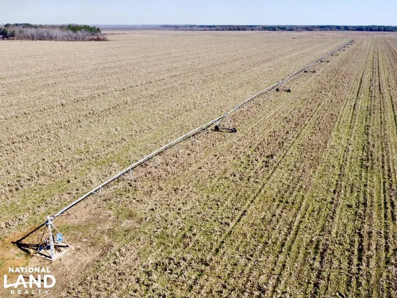 This irrigated farm, hunting, and timber investment near Atmore is a rare find. Most farmland in this area rarely comes to market at all, and the naturally strong soils on this tract are supplemented by two center pivot irrigation systems, each with its own well. The 500+/- acres in tillable ground has been rotated in grain sorghum, cotton, corn, soybeans, and peanuts, and there is an attractive farm lease in place with graduating rents that can be assumed or terminated. Enjoy easy access to the property and utilities with paved road frontage on CR 30, excellent deer, turkey, dove, and duck hunting, large potential fishing lake sites, and a scenic potential home or cabin site. The acreage not in tillable ground is in waterfowl habitat or well stocked in timber, and it's all located less than an hour from Mobile, minutes from Wind Creek Casino in Atmore, Huxford, Highway 21, and I-65. Yield data, timber information, and farm lease terms are available upon request. Contact Clint Flowers, ALC at 855.NLR.LAND for more information.