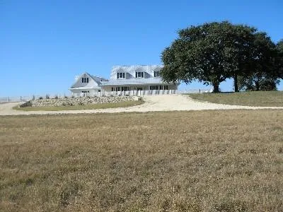 Texas heritage hilltop home is so inviting with native stone and white picket fence, front porch to enjoy nature!