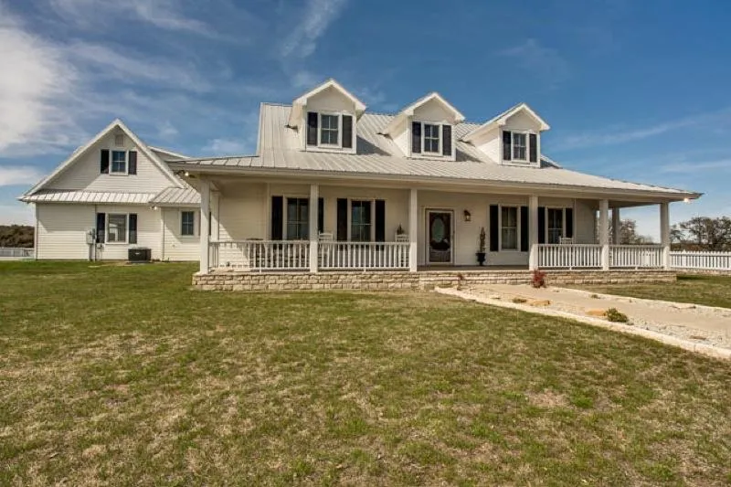 Beautiful 4,537+/- square foot custom-built, hilltop home has an Old-South plantation feel, with a circular drive, a white picket fence and a sweeping, columned front porch. Inside are two stories (4 bedrooms, 3.5 bathrooms) of fine elements offering a cozy, spacious environment for family and visitors. Custom features include concrete and wood floors, an island kitchen with granite counters, a high-end stainless appliance package, oak-paneled French door refrigerator, convection oven, and farm-style porcelain sink. Upstairs there is a gameroom, bedrooms with Jack and Jill bathroom, balcony overlooking the ranch, and much more. All the features you would expect in an estate home. Outbuildings include a first-class gambrel-style barn with water and electric, a pole shed and a workshop. There is even a kennel for the pets.