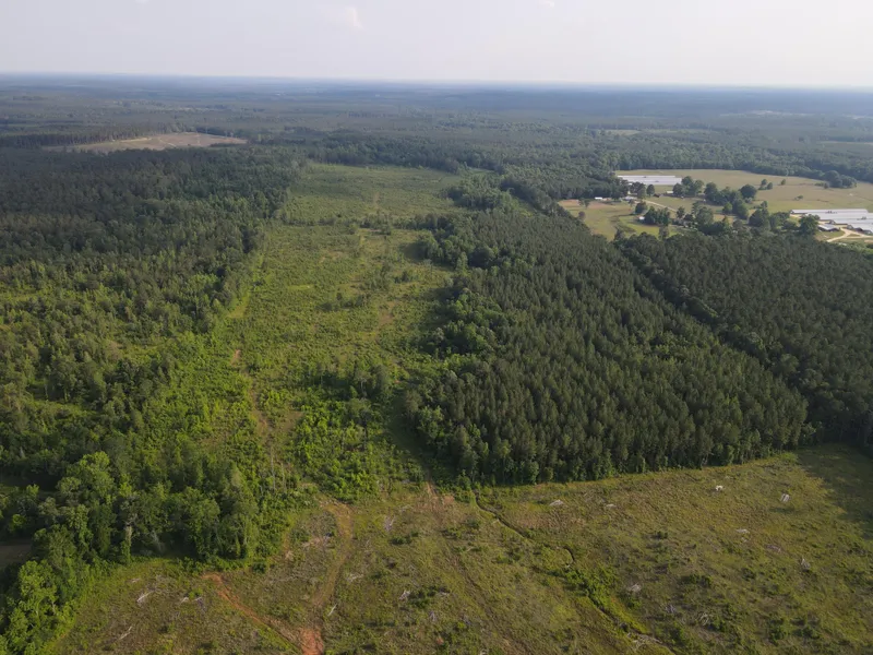 The property consists of two tracts connected by a deeded access road. Marketable timber is ready for harvest, adding to its investment appeal. For hunting and wildlife enthusiasts, you will find food plots, shoot houses, and feeders in place, supporting a strong game population. Deer and turkey frequent the area, making this a prime location for outdoor activities.