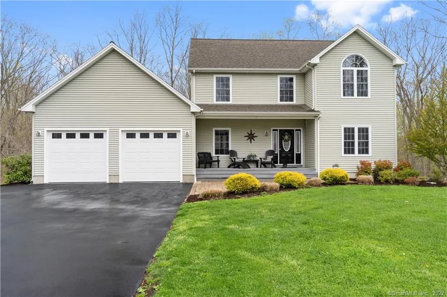 The most inviting front porch area welcomes you home to 65 Cousins Rd in Colchester! Pride of ownership is evident throughout this 3 BR, 3+ bath colonial. Hardwood floors guide you through the main level's inviting floor plan. The spacious LR/FR has a wood burning fireplace for cozy evenings. There is a bright DR right off your kitchen which is complete with granite counters, dbl sink, ss appliances and a breakfast bar. There is a slider off the eat-in kitchen area that takes you out to an entertainers dream deck complete with hot tub overlooking your pool and private wooded back yard. Back inside you will find a 1/2 bath and laundry room to complete this first floor. Your upper level has a primary suite complete with its own full bath and walk in closet. There is an additional full bath on this floor for the two guest bedrooms. Your walk out basement has flexible finished space with great potential as a home office, family room, gym or guest area, plus a bathroom. Outside you will appreciate the well manicured landscaping, above ground pool and playground area. You have a 2 car garage with more storage in your shed! Great location - minutes to Airline Trail and dog park.