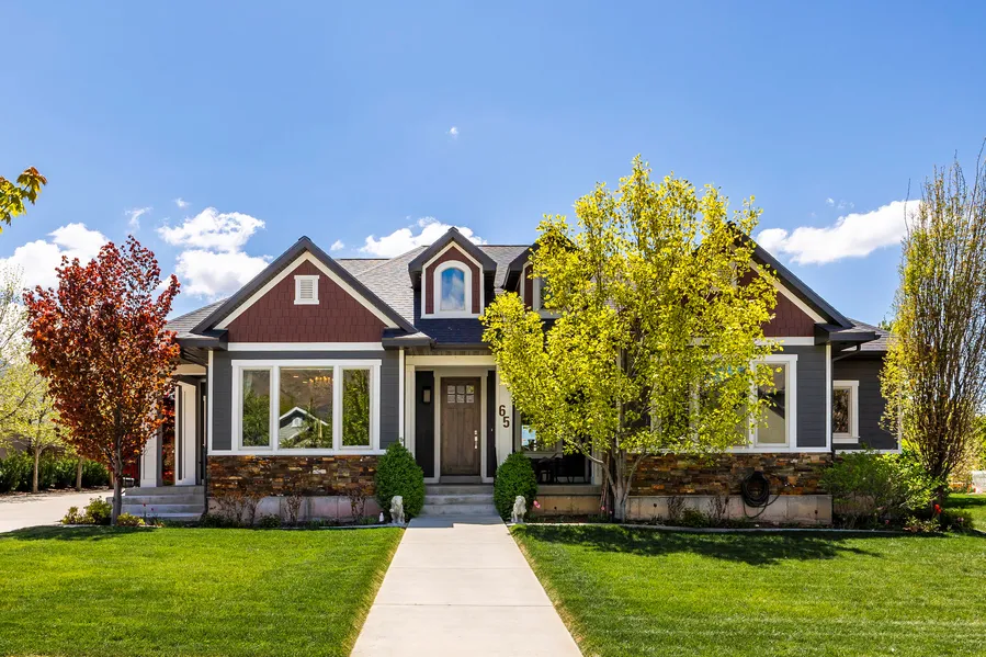 Welcome to Orchard Estates, in a quiet and highly sought after Cul-de-Sac in the heart of Mapleton. This elegant custom-built home is reminiscent of a Craftsman-style with all the modern amenities one desires including single level living. Upon entering, you are immediately greeted with a beautiful foyer and open concept floor plan. The stone wall, built-in fireplace, and custom woodwork in the family room showcase the attention to detail in this home. The spacious kitchen with gourmet appliances overlook the dining room with windows framing the mountain range. The primary suite featuring a spa-like bathroom with an oversized tub separate from the shower and a large walk-in closet equipped with custom built-ins is. With two more bedrooms on the main floor, this is perfect for a family or in-home office. The fully finished lower level with 2 additional bedrooms include a large family room, game room, and additional spaces that are perfect for a craft or listening room. This home has no shortage of storage! Situated on 0.35 flat acres of pristine landscaping with more than $200K in mature landscaping, this is a rarity with the new construction in the area. The seller has spared no expense adding outdoor space ideal for enjoying mountain views and the privacy of the backyard. For outdoor enthusiasts, Hobble Creek Canyon is less than a 15 minute drive and if you love to walk or bike, there are a number of trails and pathways nearby!