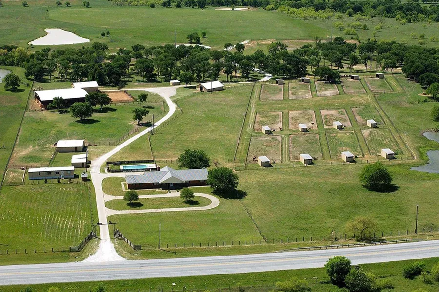 There is about 40 more acres beyond the horse facilities that includes a wooded grazing area and a large hay producing pasture with stock pond.