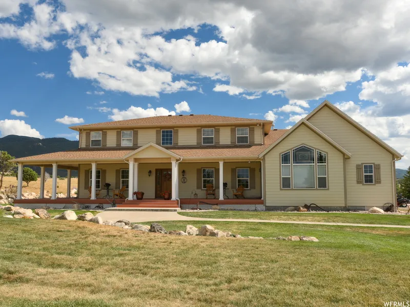 Looking for privacy, peace and an incredible place to play? This custom home on 49+ acres of beautiful landscape near the artistic community of historic Spring City is a once in a lifetime opportunity full of possibility! Surrounded by breathtaking views of the Manti-La Sal National Forest and Horseshoe Mountain, the property was intentionally seeded with native grasses drawing local wildlife to frolic and graze daily, giving the grounds an otherworldly feel. Baby deer playing in the backyard, elk moving slowly through the grasses and snow-kissed wild turkeys snuggled up in the trees in the winter can be observed from the expansive, three-sided wrap around deck or from the comfort of the open concept living space indoors. With oversized windows, a cozy fireplace and gourmet chef's kitchen, this space was thoughtfully curated for indoor/outdoor living and entertaining. The massive primary suite with vaulted ceilings, a full bath, walk-in closet and separate walk out to the deck is ideal for the outdoor enthusiast or xc skier. Upstairs you'll find comfortable rooms, two bathrooms and two large flex spaces perfect for a home office, art studio, theater or media room. Other features include: formal living and dining rooms, butler's pantry, laundry room with a dog wash, and an attached oversized 3 car garage. The basement includes 940+ sq ft of storage, a large portion of which is outfitted to function as cold storage. An incredible garage/barn, greenhouse, and a heated workshop are just steps away from the main home. The possibilities are endless on this stunning piece of well-tended property. Please see the user-friendly 360 virtual tour and highlights to get a feel for all the property and home has to offer. This parcel has too many features to list. See the attached document for more about the home and historic Spring City.