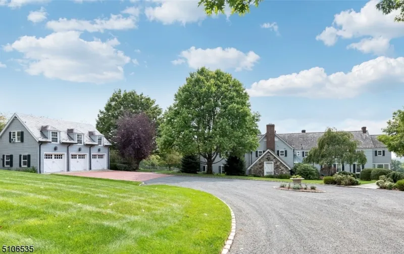 Heaven on Earth. Deerfield Farm Estate and Equestrian facility sits atop 34.48 acres and enjoys breathtaking unobstructed views of the Somerset Hills to the south and west. Renovated in 2014, the main house boasts 6 bedrooms (5 ensuite), 6.3 baths & 11 fireplaces. Equestrian complex includes riding ring, 8 stalls, tack room w/ wash stalls, barn & 4 garages. 3 Bed cottage & detached 3 car garage w/ 2nd fl. 2 bedroom apt complete the out buildings. Grandeur at it's finest, 4 sets of doors exit to a sweeping bluestone patio, gardens, sunset patio, & sensational pool area. Bulk of property is farm assessed and preserved. Rollback tax, if any, is the responsibility of buyer.