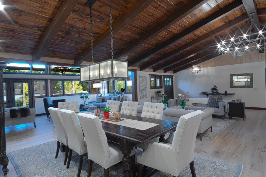 All buildings are of quality craftsmanship with top notch finishes such as custom milled Santa Barbara doors, casework and select Venetian plaster. The Thermador-equipped gourmet kitchen sits within the great room and has everything you need to prepare your freshly laid eggs or an extravagant holiday meal. As the sun sets the many automatic string lights begin to bathe your home in soft tranquility.