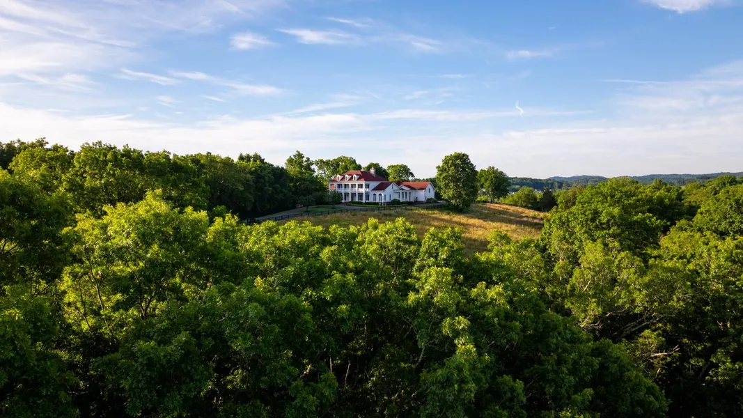 Views for miles from this exquisite home situated atop one of the higher hilltops in College Grove. This 21 acre equestrian property includes 100 x 200 arena with German geotextile footing, five stall barn, two-bedroom guest house with workshop below, observation deck for sunsets and even has a cave for exploring. The treelined winding driveway is flanked by black four board fencing. It leads you up the gentle slope and reveals the grand double porches and riding arena. The front double porches provide views of sunrise and views of The Grove Golf Course. Covered side porch and area for pool in the rear for sunset views. Primary bedroom is on the first floor and there are four bedrooms on second floor in this 6,500 sq ft floorplan. First floor also includes a formal study and sunroom. There is opportunity to expand into the unfinished basement with a separate entrance. The barn features conditioned tack room, office with bathroom and full loft. Country feel yet close to amenities.