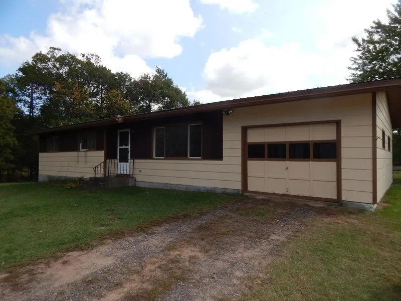 Solid three bedroom home located on a park like setting of 8+ acres with a pond close to Siren. This one level home is a perfect starter or retirement home. Washer/dryer hookups on both main and lower level, with walkout basement. Attached one car garage and detached 2 car garage plus shop for hobbies or toys. Care has been taken with this home with a new steel roof in 2014, and new oil boiler in 2020.