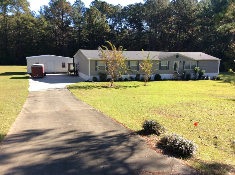 Property includes a 2004 River Birch Mobile Home, 76 x 32 (2432 sq. ft.). The home sits on 16.09 acres with mature hardwoods and pines, with a year round Shingle Pile Branch running through the back side of the property, on paved county road 41 North. This house has 4 bedrooms, 3 full baths, 2x6 stud walls, plywood floors with carpet and vinyl, and asphalt shingled roof. The kitchen/family/dining area is an open format with plenty of room for family. Family room includes a working fireplace, and kitchen with stove, refrigerator, dishwasher, and microwave with tons of cabinets for storage. The house includes an energy package, wainscot walls, ceiling fans, window treatments and blinds. The back deck is covered and spacious, and the 12 x 24 shop is any mans dream shop. Concrete drive, manicured yard, and 16 acres to hunt and enjoy. Property is located in section 31, township 8 north, range 18 east at latitude 31.6256 longitude -86.2841 with property taxes only $181.04 per year. House is zoned for Brantley School.