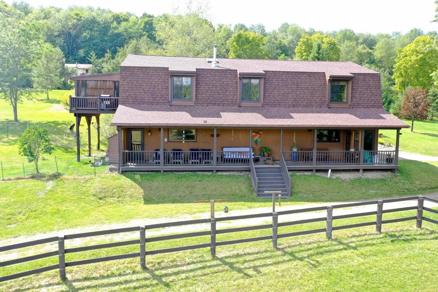 A gravel drive leads off the paved road to this beautiful property with a main home, two cottages, a barn and two ponds. A charming cottage with a screened-in porch sits at the entrance of this property which has a kitchen, full bath, a wood stove and an outdoor shower. The main home sits back off the road and has an attached 2.5 car garage with a large covered porch. Endless views of the valley can be seen from several locations on the property and there is plenty of privacy. Features of this home and property include a newer roof, air conditioning, whole home humidifier, stereo/speakers throughout, heated garage, water to all buildings, and high-speed internet service.