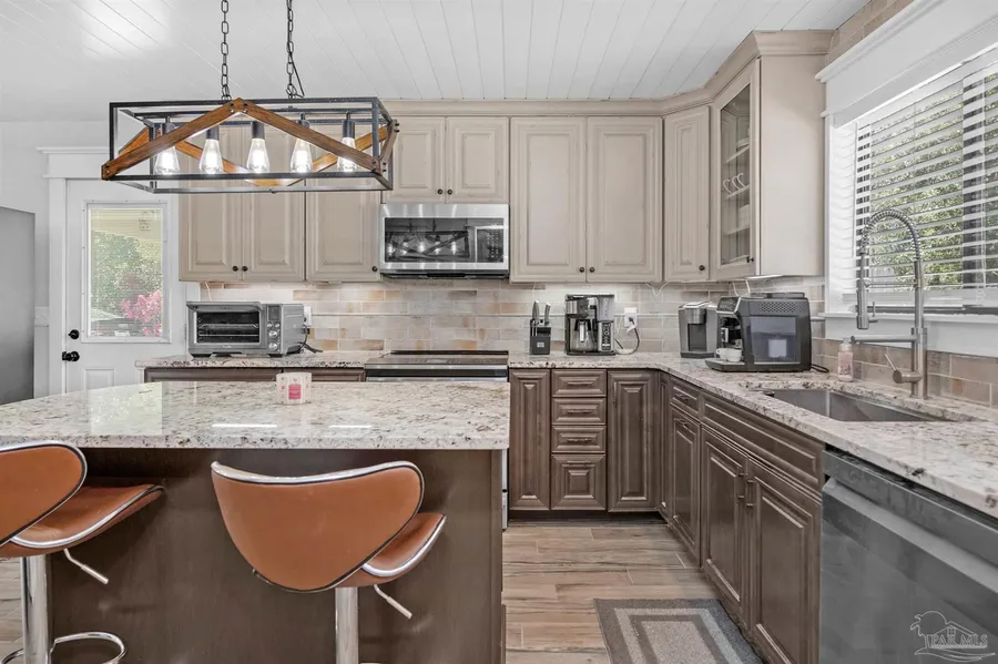 Welcome to this charming 2-story home in the desirable Robledal Estates, offering 3 spacious bedrooms, 2 bathrooms, & a versatile bonus room, all nestled on just under an acre of beautiful property. With approximately 206' of water frontage, you'll enjoy serene views & plenty of room to unwind by the water. The home features a recently renovated kitchen with sleek granite countertops, custom cabinets, stainless steel appliances, & stylish wood-look tile. The kitchen overlooks the inviting pool area, which includes a Gunite pool with a Baja shelf & a hot tub, surrounded by a spacious paver patio-perfect for outdoor entertaining. A bright Florida room brings the outdoors in, offering even more space to relax & enjoy the natural surroundings. Inside, the Living Room & Dining Room showcase gorgeous shiplap ceilings, pressed bamboo flooring, & beautiful new lighting. A 12x20 yard building provides additional storage or workspace. Plus, the sellers are offering a generous $15,000 allowance for you to customize the owner's bathroom to your liking! For those who enjoy water activities, the voluntary HOA with Crab Inc. gives you access to a boat launch, beach, picnic area, & exclusive events with a one-time fee of just $417. Full list of upgrades/features located under the "documents" tab. This home is truly a hidden gem-don't miss your chance to make it yours!