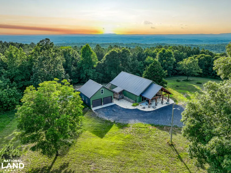 The 2,231-square-foot Lodge, completed within the past year and perched beautifully atop Tucker Mountain, boasts 3 bedrooms, 2 bathrooms, including a cozy bunk room, a spacious great room with a fireplace, and a fully-equipped kitchen featuring stainless steel appliances. The property also includes a brand-new, state-of-the-art water system with a new well and an 800-gallon storage tank. Enjoy outdoor living on the full-length front patio, side, and rear decks.