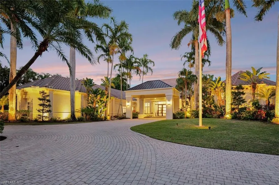 Come escape into this fully developed 2 acre Eastern exposure compound in Pine Ridge estates. With over 10,000 sq. feet under air and almost 20,000 sq feet of additional exterior living space, this home is the epitome of the Naples lifestyle. The gracious glass front doors open to a grand foyer setting the tone of luxury and casual elegance. Once you pass the open dining room which seats 12 comfortably and the wood burning fireplace, you enter the great room that includes a well appointed chefs kitchen with Wolf and Viking appliances along with a separate breakfast room and fully equipped bar area. The Primary suite which comprises one entire wing of the home includes glass doors that pocket open onto the courtyard pool area, his and hers closets, a spectacular primary bath with soaking tub, separate shower, outdoor shower, garden area with spa and a home office/den. The property with its six additional bedrooms all with full en suite bathrooms hinge around the resort like pool which features a lap pool, sunning platforms, and spa. Also found in the screened lanai is an outdoor kitchen that includes a gas grill with plentiful seating for entertaining, sizable covered lounge space with two retractable projection screens and a sunken conversation pit with fireplace and mood lighting. The first floor of the two story guest house is equipped with a home theater, a billiards room, a red light sauna and a HD Golf simulator room. The second level with balconies has a massive bunk room that sleeps 10 with four queen bunk beds, a king and a sitting area with private bath along with a second incredibly sized guest suite and bath. The back of the property has been developed with a sports court that is designed for pickleball or basketball along with a Moroccan themed screened tiki hut, pavered patios for entertaining, a swim spa, and a separate stone fire pit and pergola. This property is truly a playground for all ages! The entire compound can be run remotely through the Control 4 monitoring system with mobile control. A full house generator is in place along with a R/O system, a septic system, two private wells and a home gym. A Juice Box electric car charger is installed in the oversized three car garage. For secondary parking, the covered carport along the North side of the property accommodates two vehicles while the circular driveway allows for seven additional parking spots. Steps from Vanderbilt and Seagate beach as well as shopping and dining at Mercato, Waterside shops and Venetian Village, this is a once in a lifetime opportunity to own such an exquisite and unique 2 acre estate in central Naples with a sense of privacy and a blend of suburban and rural elements. Pine Ridge Estates was originally developed in the 1960s by the Collier Family in hopes of creating a hidden gem in a natural setting while also being located only steps from the bustle of downtown.
