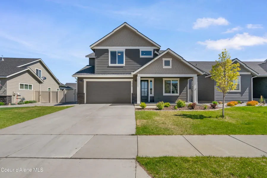 Welcome Home! Move in ready, highly upgraded, Carlsbad model in The Trails. Natural light envelops the spacious 1st & 2nd floors with oversized windows, 9' ceilings, and 8' interior doors. The inviting great room features a gas fireplace w/modern tile surround and opens to the gourmet kitchen equipped with SS appliances, counter depth frig., large island w/farmhouse sink, quartz counters, full tiled back splash, soft close cabinets, and large shelved pantry. Desirable LVP flooring, a bonus room/office, and drop zone off the 2 car tandem + garage complete the first floor. The second floor boasts designer carpet, 4 bedrooms, upstairs laundry, and full bath w/quartz counters. The generous primary suite has vaulted ceilings, additional his/her closets and a luxurious private bath with dual sinks, separate water closet, soaking tub, sizable tiled shower, and walk in closet. Enjoy outdoor living in the fully fenced, park-like backyard with a lush no maintenance lawn, and 9' x 16' covered patio. Just minutes to parks, trails, shops, & I-90. Must see!