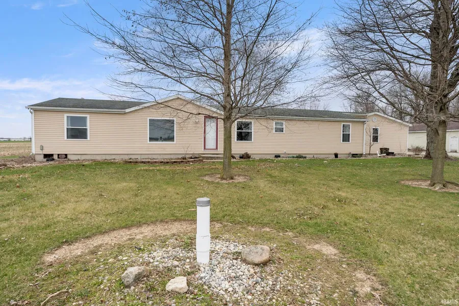 Ranch Home in the Country with 3-Car Attached Garage & Pole Barn on 2 /- Acres! This manufactured home features 3 Bedrooms, 2 Full Baths. The main bedroom has vaulted ceilings with an Ensuite that has a Sliding Barn Door entrance & Double Vanity! Kitchen has an Island for extra prep space & lots of cabinet storage! The Office off of the Large Living Room is a great place to work from home. Patio Doors in the Family Room add lots of light! 30x56 Pole Building has spray foam insulation with concrete floors & a gas line has been installed to easily make this a heated space in the future! Great space for a Workshop, Extra Storage, or 4H projects! Great opportunity to get into the Peaceful Country! Furnace is 2 years old. Propane Tank is rented by Apache Propane. Electric is Heatland REMC, Internet was Citizens Telephone Company.