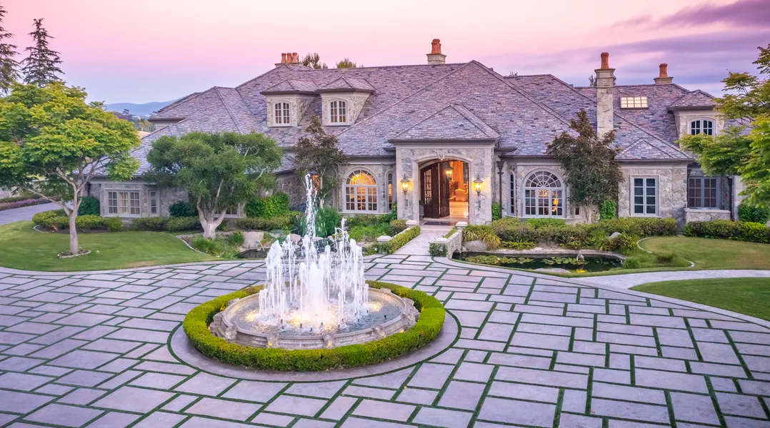 Located on four lush acres, this warm and beautifully designed estate home is built in a guard gated community in Rancho Santa Fe, California. This home was designed by a couple who traveled extensively through Europe and especially France to create a memory of those experiences. It is south facing and filled with natural light. It was constructed utilizing hand selected and carefully sourced materials from Europe and the United States. There are two beautiful koi ponds and a small lake home to a family of ducks. The resort style pool has a beach entry. There is a separate spa, tennis court and delightful tennis pavilion with a bath, storage area and changing room. Hot air balloons fly overhead daily. The house is clad in red mountain stone and the patios are Idaho quartzite. The roof is made of antique slate sourced from an old church in Vermont and trucked to the site. A beautiful hand forged iron fence wraps the 4 acres. As you enter, the magnificent gates lead to a Ashlar pattern driveway interspersed with grass. The spectacular grand circular fountain welcomes you with a dancing water show. The garden produced organic vegetables and of course fruit from the grove year-round. The mature and gorgeous landscaping features specimen trees of Magnolia, Liquidambar, Jacaranda, Pines, Sycamores and Live oak. Magnificent front doors of cherry and Burl are 5 inches thick and weigh 1,000 pounds each operating easily and flawlessly on a hinged system. Throughout the home PE Guerin, Sheryl Wagner and Gerber hardware decorate the cabinets and doors. The interior doors are two and three-quarter inches thick. The outdoor fixtures are bronze. All gutters and downspouts are coppers. The floors are marble, lime stone and cherrywood and are unique and custom. There are five 18th century fireplaces purchased in Belgium and France prior to the beginning of construction. The fireboxes are herringbone pattern Chicago fire brick and antique stone. A breathtaking Baccarat chandelier graces the dining room. It is a room created for large family gatherings and entertaining. As you enter the library you will see it is made of ribbon cherry with beveled glass windows and a graceful saltwater aquarium. The warm open kitchen has a greenhouse ceiling and the finest handcrafted cabinetry. It opens to a large family room with a fallow deer chandelier dropping into the center of the room from antique beams. Not to be ignored is the imposing master suite its splendid bedroom leads to the elegant his and her bath with two walk in closets as well as a sunny and beautiful exercise room with its own washer, dryer and refrigerator. There is a charming wine room, hobby room and theater rom for the family to enjoy. The guest house has a cozy sitting area, there is a large bedroom and bathroom and although it is near the main house, it is very isolated and private. The garage parks 8 cars; one is a limo space. There is an electric charging station in the garage. This is a home of prestige and distinction. Truly unlike anything else. Do not loose the opportunity of a lifetime! It would be extremely difficult to recreate this magnificent estate.