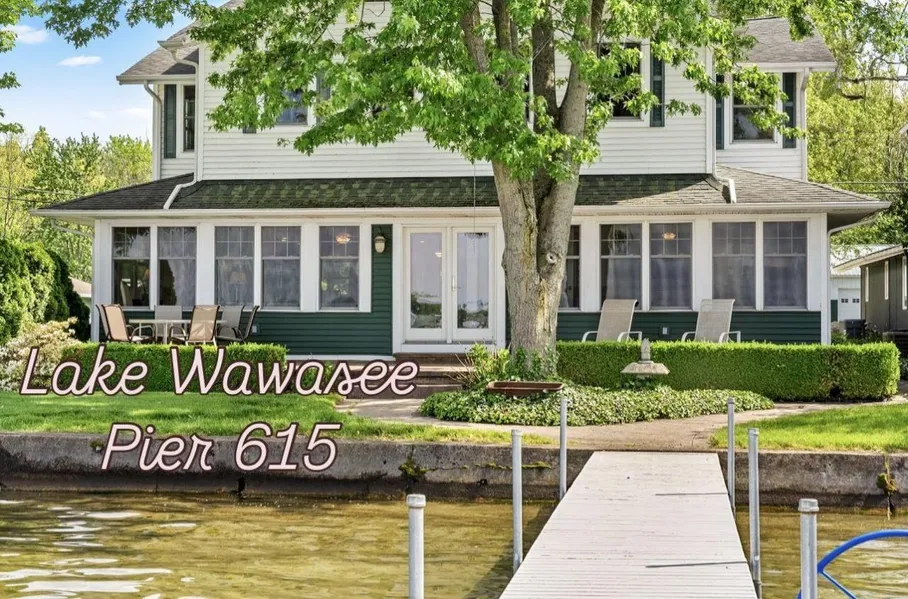Welcome to Pier 615 on Lake Wawasee! Perfectly positioned on 50 feet of pristine, sandy-bottom shoreline, this home delivers an unrivaled combination of comfort, space, and natural beauty on Indianas most sought-after lake. Lake views stay with you from the kitchen to the main-level suite in this spacious home that offers nearly 3,000 square feet of living space. With 8 bedrooms and 4 full bathrooms, this home provides plenty of room for family, friends, and guests. Bonus features of the home include main-level and upper-level laundry facilities, hard wired house generator, two furnaces, two AC units, built-in gas grill, concrete seawall and stamped concrete patio. Adding to the propertys exceptional appeal is a detached, heated two stall garage and two joined pole barns located on the west side of the property. The north pole barn is also heated and has a water spicket. Dont miss your chance to own a slice of paradise on Lake Wawasee!