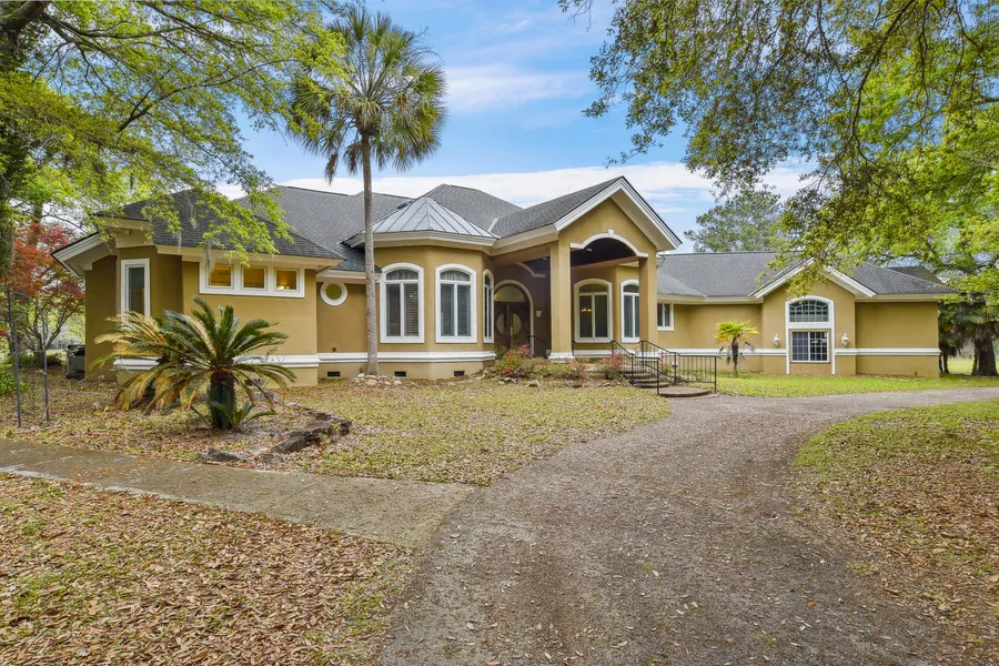 Dare to Dream, of this beautiful Mediterranean-style custom built lakefront home It is secluded and situated on 26 beautiful private acres. Minutes from Hwy 17-A. The property has three stocked ponds, a beautiful waterfall feature along with lush foliage. This energy efficient home is built solid with 14'' poured concrete exterior walls, creating a home that is able to withstand the Lowcountry's extreme weather. This home boast a generous open floor-plan with all rooms offering views of the lake and easy access to the 121' covered patio. This is truly a one of a kind home you will not want to miss.
