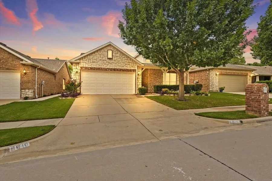 Nestled in the highly sought-after Greens of Oakmont community, this beautifully maintained 3-bedroom, 2-bath home offers the perfect blend of comfort, style, and golf course living. Located directly on the 16th hole of Oakmont Country Club, enjoy serene views and picturesque sunsets right from your backyard. The open-concept layout features a spacious living area with an updated kitchen with corian countertops and stainless steel appliances, and a light-filled dining space perfect for entertaining. The primary suite offers privacy and relaxation with a large walk-in closet, dual vanities, a soaking tub, and a separate shower. Step outside to a covered patio overlooking the lush fairway deal for morning coffee or evening gatherings. HOA mows front and backyard. Golf, trails, and community amenities nearby, this is Texas living at its finest! Don’t miss your chance to call Oakmont home. 55 and over community