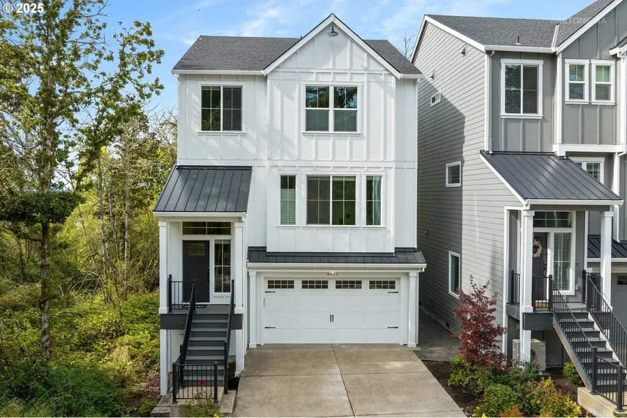 This gorgeous like-new home sits at the end of the street on one of the community's largest lots, backing to protected green space for ultimate privacy and serene views. With 4 bedrooms (plus bonus room), 3.5 bathrooms, and modern touches throughout, this home combines timeless style with contemporary convenience. The main level features an open-concept layout connecting the living room, dining area, and chef's kitchen. The living room showcases an elegant electric fireplace, while the kitchen is a chef's dream with Bosch stainless steel appliances, quartz countertops, and a large island for casual dining or entertaining. Engineered hardwood flows throughout, and a versatile bonus room serves as a home office, fifth bedroom, or playroom. Step onto the deck and enjoy the peaceful backdrop of the lush green space. Upstairs, the primary suite is a private retreat with spa-like bath, large walk-in closet, and serene views. Two additional bedrooms, another full bath, and a convenient laundry room complete the upper level. The lower level offers a spacious family room, bedroom, full bath, and exterior access, making it perfect for guests or multi-generational living. Modern upgrades include a tankless water heater and an electric car charger in the garage, combining style with today's lifestyle needs. Outside, the covered patio and fully fenced yard provide space for entertaining, gardening, or simply enjoying the natural surroundings. Located near top-rated schools, parks, trails, shopping, dining, and major employers, this home blends modern living with a serene, private setting.