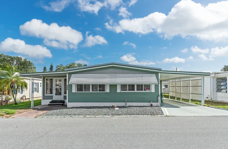 Welcome to this charming 2-bedroom, 2-bath FULLY FURNISHED manufactured home nestled in Bonfire Mobile Home Park, a 55+ resident-owned (co-op) community located along scenic Haynes Creek with direct access to Lake Eustis and Lake Griffin. This 1,152 sq ft home features a spacious primary suite with both a walk-in and built-in closet, plus a private ensuite bathroom. The guest bedroom includes a double built-in closet for ample storage. The kitchen offers a newer matte finish stainless steel refrigerator and dishwasher, furniture-edge countertops, and a built-in table perfect for casual dining or a home office. A generously sized dining area flows into the large, inviting living room, ideal for relaxing or entertaining. The enclosed Florida room is accessible from both the living room and a separate entrance from the front yard. Adjacent to the covered carport is a large utility room with washer and dryer, plus a bright and wonderfully sized workshop—perfect for hobbies, projects, or extra storage. Speaking of storage... there's a large secured area where residents may store items such as boats or boat trailers at no additional cost. Residents love the friendly atmosphere and vibrant social life in this peaceful, waterfront community. Come experience the Bonfire lifestyle