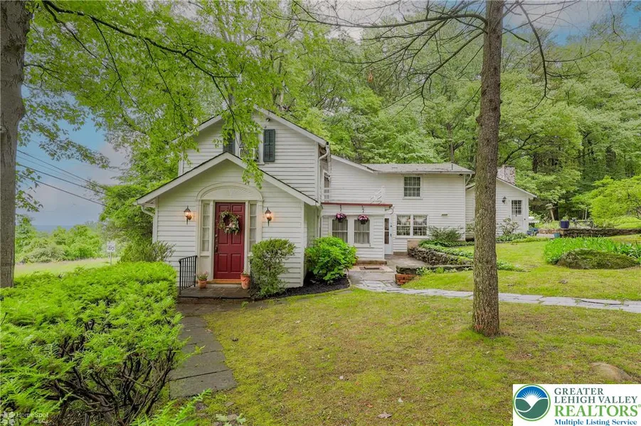 Welcome to Dogwood Estates at 6650 Mountain Rd – A Nature & Wildlife Lover's Dream. Formerly owned by the President and Editor in Chief of The Morning Call, this enchanting estate, named Dogwood Estates, is a rare opportunity to own a piece of history within the Wildlands Conservancy's Reimert Memorial Bird Haven. Surrounded by 1.5+ acres of meticulously maintained landscaping and perennial gardens, this New England-style Colonial seamlessly blends natural beauty with timeless charm. Step inside through the solid wood Christian door with Williamsburg Fan to discover a sun-soaked living room featuring random width white and red oak hardwood floors and a cozy wood-burning fireplace. The formal dining room accommodates a table for 10 and flows into a private study overlooking the gardens. The eat-in kitchen boasts granite countertops and new luxury vinyl plank flooring that opens to a three-season room perfect for watching nature bloom. A first floor powder room and a rustic family room with wormwood walls and a second wood-burning fireplace – originally a horse stable – complete the main level. Upstairs, you'll find three generous bedrooms, two full baths, and a loft-style sitting room with private veranda allowing you to truly immerse yourself in the serene natural surroundings. A detached two-car garage completes this extraordinary property. Dogwood Estates is more than a home – it's a lifestyle of harmony with nature and history, waiting for its next steward.