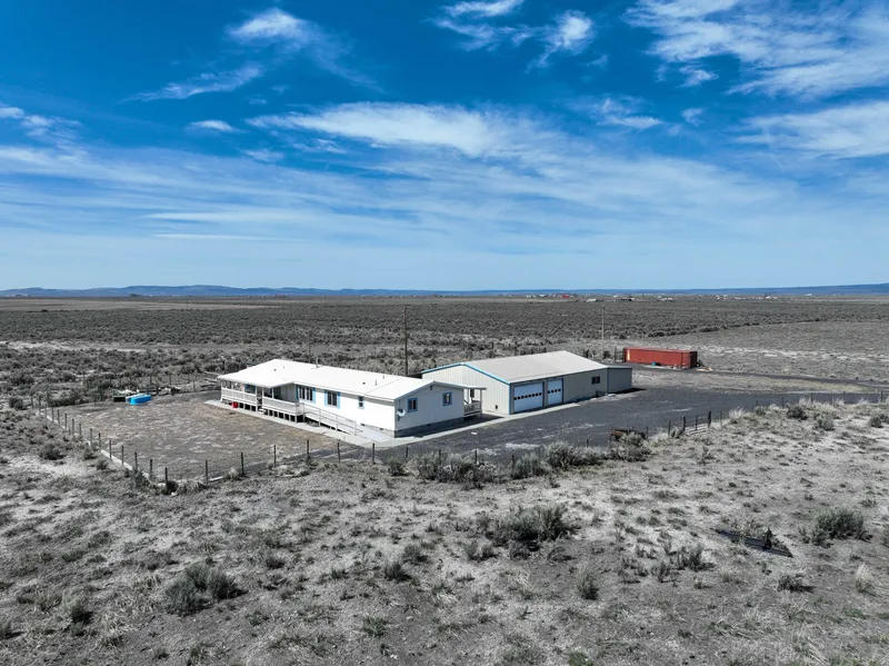 This Eastern Oregon property is an easy flowing setup located in the high deserts of Harney County. Off Highway 78 between Crane & Burns, the Tate Estate features perimeter fencing, graveled/fenced driveway, & a large graveled area for extensive parking. Improvements include a cargo container, chicken coop with covered storage, 2,440 Sq. Ft. shop, & a 5 bedroom 3 bathroom manufactured home.