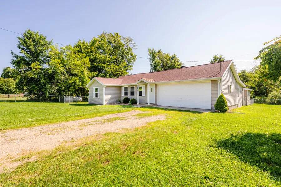 Come and see this bright and tidy 3 bed 1 bath ranch with 2 car attached garage on almost 3 acres! A quality chain link fence encloses a huge portion of the rolling fields of this property. Inside, the natural lights floods the interior of this renovated home. Not a thing to do but move in! Brand new propane furnace with heat pump AC unit, Kinectico water softener&purification system-- all in 2021, roof is 4 to 5 years old. Previous owners installed new septic system just before current owners bought. Vaulted ceilings grace the living room, with a pendant light hanging just over the dining area. You don't need a single electric light in the kitchen when the sun shines just right! Plenty of cabinets, a pantry, and a backyard entrance to boot! Luxury vinyl flooring all through kitchen into hallway and laundry room on other side of house. The large, full bathroom and laundry room are conveniently close to each other! Two of the bedrooms could comfortably fit king-sized beds and accessory furnace, the third will fit a twin and a dresser [the 3rd bedrom also has LED strip lighting that stays]. Also a large shed with electrical, finished and painted drywalled interior- great opportunity for many possibilities! Not too many redone houses on acres so schedule your private showing soon!