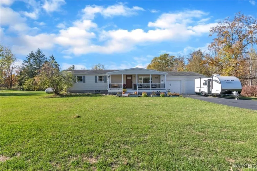 Welcome to 6674 Wisterman Rd - where modern comfort meets peaceful country living. This beautifully renovated 3-bedroom, 2-bath ranch sits on more than two serene acres in the highly rated Starpoint School District. Step inside and you'll find a bright, open-concept layout that seamlessly connects the living, dining, and kitchen areas under soaring ceilings. The fully updated kitchen features granite countertops, a stylish tile backsplash, center island, and a full suite of newer stainless-steel appliances - perfect for cooking or entertaining. A set of glass doors leads to the new concrete patio, overlooking your private backyard oasis, ideal for relaxing or gathering with friends and loved ones. Convenient first-floor laundry makes everyday living that much easier, with the washer and dryer negotiable for the new owners. The primary suite offers a vaulted ceiling, large closet, and beautifully updated en suite bath. Additional bedrooms are freshly painted with new carpet and lighting, giving the home a cohesive, move-in-ready feel throughout. Major updates include a brand-new septic system (2023), high-efficiency furnace and central A/C, newer hot water tank, newer blacktop driveway, and newer concrete sidewalks - all completed between 2022 and 2023. There is an invisible dog fence that is also included in the sale, offering peace of mind and freedom for your four-legged friends. Nestled in a quiet, country setting yet just a short drive to shopping, dining, and major conveniences, this home strikes the perfect balance between peaceful living and everyday practicality. Enjoy the best of both worlds - the privacy and space of rural life, with the comfort and updates of a modern home. Offers reviewed as received
