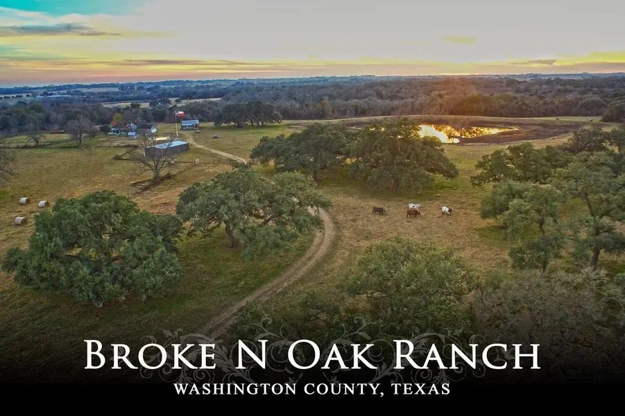 Approx. 85.845 acres featuring numerous groves of grand old live oak trees scattered throughout the property. Enter the meandering driveway and follow as it crosses a rock bottom wet-weather creek and leads its way up to the hill top through the trees. There is a Farmhouse featuring a large porch, 3 bedrooms, 2 baths, kitchen/dining, living room and walk-up attic for additional storage or future rooms. Other improvements include a restored log cabin guest house with 1 bedroom, 1 bath, fireplace & porch that overlooks the pond; Swimming Pool with pergola; and pole barn/shop with concrete floor and storage room. There are three ponds and cross fencing. The Broke N Oak Ranch offers secluded privacy with only a short drive for shopping and a few minutes to Lake Somerville with paved road access, wildlife and a great additional home site located among the Live Oak groves. It is located less than 30 minutes from Bryan-College Station (Kyle Field).