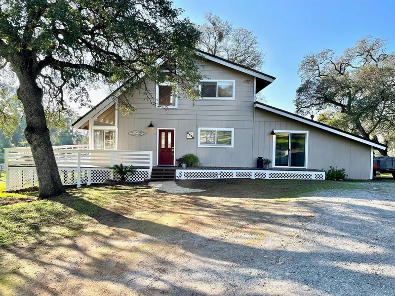 Bring your horses, farm animals, and gardening supplies to this charming farm house on 4 plus acres or just sit back and enjoy the stunning green pastures, mature oaks and breath taking sunsets from the wrap around porch. This Beautifully updated farm house and unique open balcony layout is spectacular. Featuring a spacious floor plan with vaulted open beam ceilings including gorgeous tongue and groove pine. Real hard wood and natural travertine stone floors through out this home add additional elegance. Multiple custom windows allow plenty of natural lighting. 3 bedrooms plus bonus room and 2 beautifully updated bathrooms. Enjoy warm, cozy winters next to the wood burning stove and fun summer time activities at one of the local lakes. Just about everything in this home is new or newly refinished. This home is a must see!