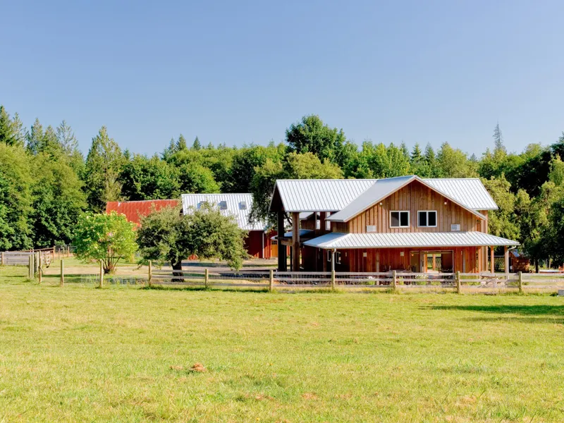 Beyond the main inn, a carriage house offers additional housing for guests, inn managers and office space. Overlooking sweeping views of the Nehalem River and surrounding meadows, the main suite boats built-in alder cabinets, French door entry to deck, built-in closet, granite desk top, and internet satellite connection. A bunk room in the carriage house also contains eight bunk beds and five skylights which add to the natural light infuses the room. A full bath with a custom soaking tub, sunflower showerhead, marble vanity top, low flow toilets and a two person sauna complete the spa setting. From the solid wood doors and window framing, the first floor of the carriage house offers a single car garage, 2500 gallon water storage tank and treatment, a cellar and laundry with utility sink to freshen up from farm and gardening labors.