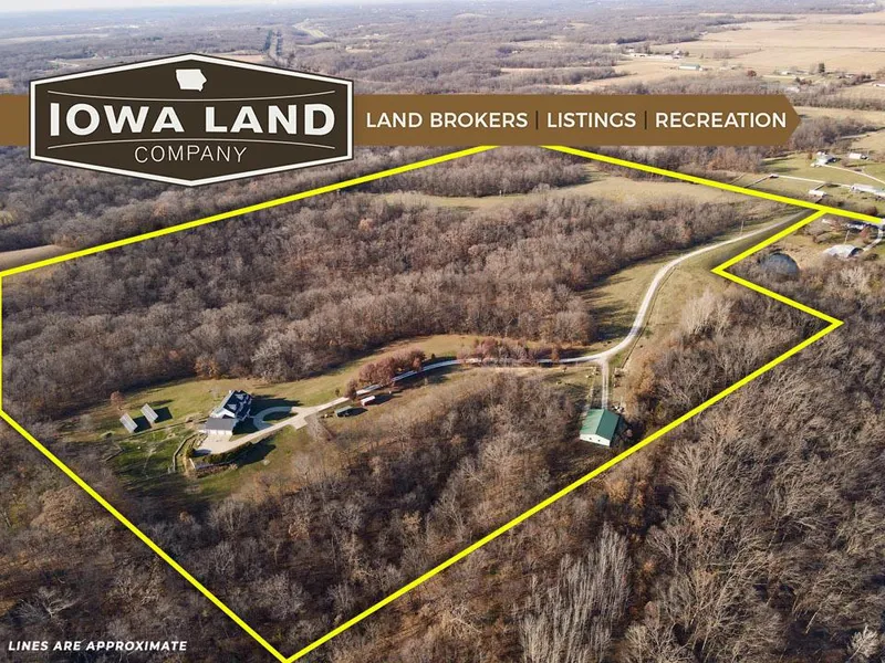 Located in Wapello County,- Agency, Iowa is a modern home that sits on 51+/- acres of paradise! Imagine driving down your mile private tree-lined driveway to your 2-story 3,232 sq ft home, having coffee in the morning on your covered front porch, walking out of your back door and hunting. Imagine having the hobby farm you always wanted. Well, you can have this and more! This 4 bedroom 4 bath home has enough room to entertain family and friends inside and out. The minute you walk in the front door you notice the quality and personality of this luxury home. Built in 2002, this executive home has 3,232 sq ft of living area. The home is main floor living and has many features that include a gorgeous front entry with a custom tile floor, 9 ft ceilings, large dining room, cozy living room, a stunning primary suite with walk in-closet, beautiful open kitchen concept with plenty of cabinet space, breakfast nook and many windows to let in the natural light and a French Door that leads out onto the back deck. The laundry room is off the kitchen for easy access. The second floor has a large sitting room (which could be made into an additional bedroom by adding a wall), a bedroom with a full bathroom and walk-in closet and 2 very spacious bedrooms with a full bath between them. The finished walkout basement has a large living area, a nonconforming bedroom / hobby room, full bathroom and utility room. The attached 3-car garage has room enough for the family fleet. There is a 4060 metal building with electric, several outbuildings and good fence for the hobby farmer. The farm currently has Alpacas and could be included in the sell. The home is all electric and has solar panels and Geothermal making the monthly electric bill less than $20 per month! The farm consists of 51 +/- acres of which approximately 32 +/-acres are timber/draws. There are 6.5 +/- acres that carries a CSR2 of 71 that would make a fantastic food plot! There are plenty of whitetail and turkey on and around this acreage! This is truly private Country Living with peaceful surroundings. Homes of this caliber with acreage do not come available often. To take a personal tour of this home and acreage call Agent Jim Davis.