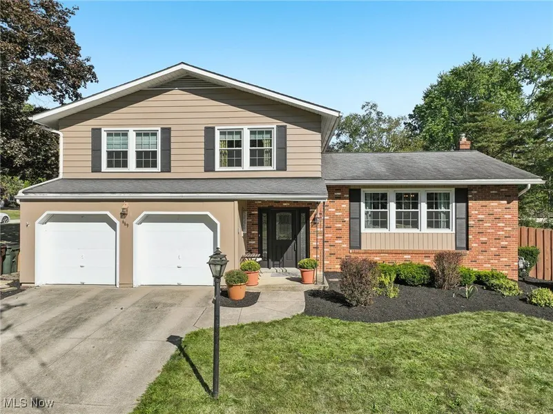 Welcome to this inviting home in the sought-after Revere school district, ideally located near shopping, dining, and major expressways for ultimate convenience! Step inside to a spacious foyer with ample closet space, setting the tone for a thoughtfully designed layout. The living room is highlighted by a large picture window, filling the space with natural light. A formal dining room with wainscoting, hardwood floors, and a large window adds elegance and charm. The kitchen offers abundant cabinetry, Korian counters, and stainless steel appliances. An adjoining dining area features built-in cabinetry, a ceiling fan, and seamless flow into the family room. Relax by the fireplace in the cozy family room, which includes direct access to the outdoor patio. A convenient half bathroom completes the main level. Upstairs, the primary suite provides multiple closets and a private ensuite bathroom, creating a true retreat. Three additional bedrooms and a full bathroom complete the second level. Outside, the .37-acre yard includes a large, concrete patio and fenced-in space, perfect for outdoor enjoyment. Additional features include an attached two-car garage. Major updates include newer A/C (2021), hot water tank (2018), exterior paint (2016), roof (2011), windows (2010), and newer kitchen appliances! This home combines comfort, function, and a prime location-schedule your private tour today!