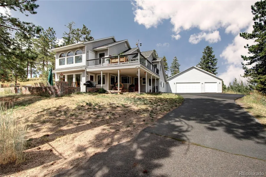New Price, New Carpet and move in ready!!! Here is your opportunity to live in the beautiful hills of Evergreen. This is a very useable 2.52 acre lot with lots a flat area and a beautiful home. An ideal location, close to great schools, amenities, hiking & biking trails (Three Sisters), quick commute to Denver and ski resorts. The entry has beautiful stone floors that lead to an amazing kitchen with hickory cabinets, granite countertops and newer appliances. Main level also includes a Dining room with huge windows and great views, a cozy living room with a fireplace to enjoy those snowy nights, a family room with a sizable Wet Bar for entertaining friends and family and a huge office. Upstairs you will find 4 bedrooms including a spacious master suite with a en-suite 5 piece bathroom including a jetted tub, a private library room, two closets and a large upper deck. The second master bedroom has its own private bathroom as well with access to upper deck. One of the best parts of this home is the massive 1280 sq ft garage which includes a workshop and "Costco" storage room and a large mud rom. Property is mostly flat with a lot of useable area and RV parking that is easily accessible. Lower lever deck is an expansive 925 sq ft area partially covered and includes a natural gas firepit hook up.Come make this your new home..