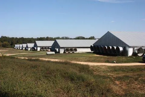 10 house broiler farm growing 9 pound bird in Covington County. This farm last year almost approached $600,000 in gross income. The farm comes with 67 acres, a 1890 sq. ft nice brick home, a 16'x80' mobile home, 2 tractors, Lewis house keeper, pulverizer,house washer,and front end loader. All the houses are solid wall premium pay. 4 houses were built in 2011 and measure 550'x50'. 6 of the houses are 500'x40' built in 1991,93, and 1995. 2011 houses have 14 Acme fans,Big Dutchman feeders, Platinum Rotem, LB white tube heaters, 100 ft. cool cells. The 6 other houses have Choretime feeders, Loubin drinkers, farm alarm, with LB White tube heaters in off end and box wall heaters in the other with 10 fans and 60 feet of cool cells. There is a 30'x100' dry stacl, and 40'x60 compost with concrete bend. 5 wells with community backup and 3 generators. This farm will sale fast.