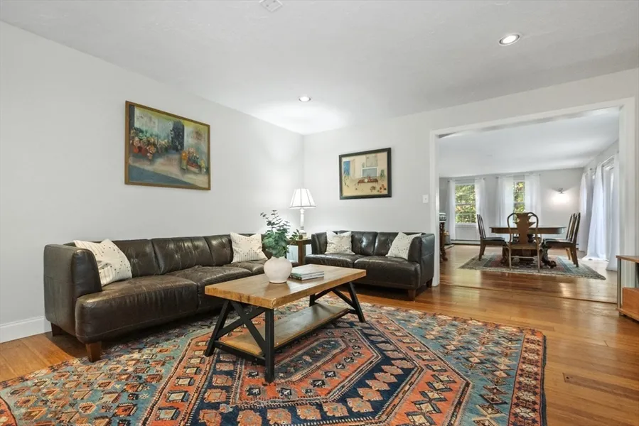 Private woodland oasis! This spacious property offers a flexible layout with many options for comfortable living and entertaining. Featuring stylish and functional spaces, with a large living room and oversized dining/family room with wood stove sitting area. Renovated eat-in kitchen with granite counters, SS appliances, and multiple sliders, connecting you to the natural beauty of this bucolic setting. Two additional bedrooms with jack & jill bath, and laundry room round out the first floor. Upper level features a primary bedroom tree-top retreat, with vaulted beamed ceiling, skylights, and updated full bath with rain shower. Lower level with huge bedroom, updated full bath, and separate entry - perfect for in-law, au-pair, or private office. Wonderful, large deck, and lovely private grounds surround the property. Huge bonus space above the 2-car garage offers a myriad of possibilities for more storage or expansion. Excellent proximity to major routes, state park, and commuter rail!