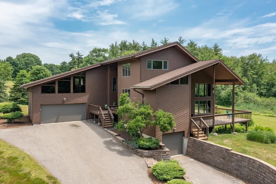Modern Elegance on 7+ Acres in beautiful Strafford, with Barn & Private Pond! This stunning contemporary home blends sleek design with serene country living on 7+acres of rolling landscape, and a private pond! Nearly 3,000 sq. ft. of finished space, featuring soaring ceilings, walls of glass, and a seamless connection to nature. The show-stopping theatre room is built for entertaining with projector, surround sound, custom bar, blackout curtains, and a striking fieldstone fireplace. A second sunken living room adds a second fireplace, cozy conversation nook, and lounge area for more intimate gatherings. The sprawling home layout offers 3+ bedrooms, a bright home office with built-ins, and a versatile walk-out basement with finished space, restroom, workshop, and 3-car garage. The primary suite feels like a private sanctuary, tucked away with peaceful backyard views. Outdoors, enjoy tranquil mornings by your private pond, afternoons on the sunny deck, and space for equestrian pursuits with a 24x36 horse barn. A rare opportunity to enjoy modern style, natural beauty, and functional living all in one exceptional property. "Some" furnishings included w/sale, at Seller's discretion. Showings begin 8.23.25.